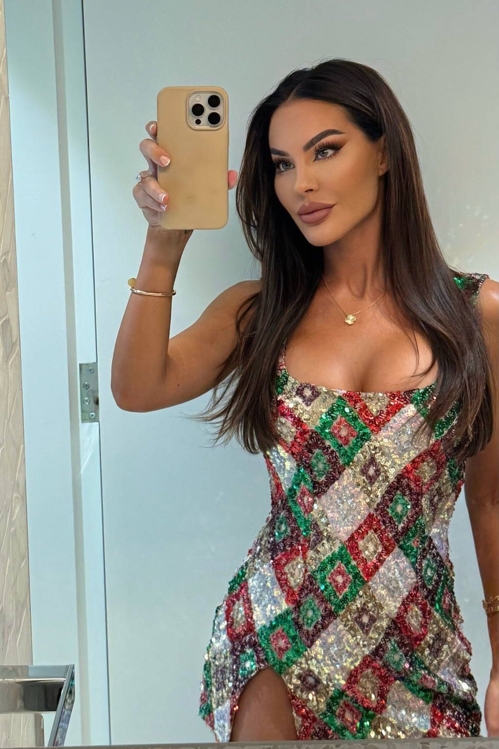 Step into the spotlight with the Victoria - Crystal Dress, a premium luxury mini/micro dress designed to make you shine. This dazzling piece is crafted with full sequins in a vibrant, multicolour pattern, ensuring you'll turn heads at every event.